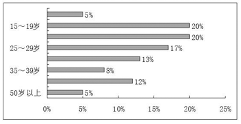 KDDI有關(guān)人士表示:“這個業(yè)務(wù)當(dāng)初是瞄準(zhǔn)30多歲用戶開發(fā)的,但實際上在購買此類手機的人士中,10多歲或20多歲的年輕用戶占了62%,見圖1。據(jù)本公司以高中生和大學(xué)生為對象實施的調(diào)查結(jié)果顯示,如果音質(zhì)與CD差不多就愿意使用手機音樂發(fā)行服務(wù)!眂hakuutaFull業(yè)務(wù)的特點:
