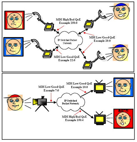 factor,都能夠在MDI定量和實時獲得的抖動和丟包信息基礎(chǔ)上推算出來。網(wǎng)絡(luò)的入口、出口以及重要的路由器都可以設(shè)置MDI監(jiān)控,采集的信息被送到網(wǎng)絡(luò)監(jiān)管中心,提醒業(yè)務(wù)提供商語音和視頻業(yè)務(wù)的動態(tài)質(zhì)量,設(shè)置能預(yù)測MDI狀況。
