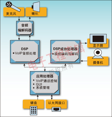 當(dāng)今應(yīng)用處理器的處理能力的增加使得我們能使用先進的操作系統(tǒng)環(huán)境,例如嵌入式Linux來有效地將V2IP系統(tǒng)中需要的控制和媒體處理進行劃分。這反過來又使得使用單一處理器和工具鏈的軟件開發(fā)更加簡單,由于減少了一個或更多的昂貴DSP而降低了成本。