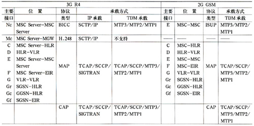 表1 R4核心網(wǎng)與GSM核心網(wǎng)信令接口、協(xié)議及承載方式對(duì)比