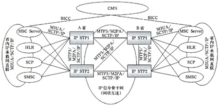 綜上所述,建議IP信令網(wǎng)應(yīng)該采用分層結(jié)構(gòu)。對(duì)于省際的MAP、CAP信令采用GT尋址方式,IP STP提供GTT功能;對(duì)于省內(nèi)的MAP、CAP信令采用目的地信令點(diǎn)編碼尋址方式,初期可以采用直聯(lián)方式,通過IP STP轉(zhuǎn)接的準(zhǔn)直聯(lián)作為備用路由。省內(nèi)、省際BICC信令通過TMSC Server或CMN轉(zhuǎn)接。