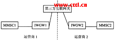 圖2 點(diǎn)對(duì)點(diǎn)多媒體消息業(yè)務(wù)網(wǎng)間互聯(lián)網(wǎng)絡(luò)結(jié)構(gòu)示意圖