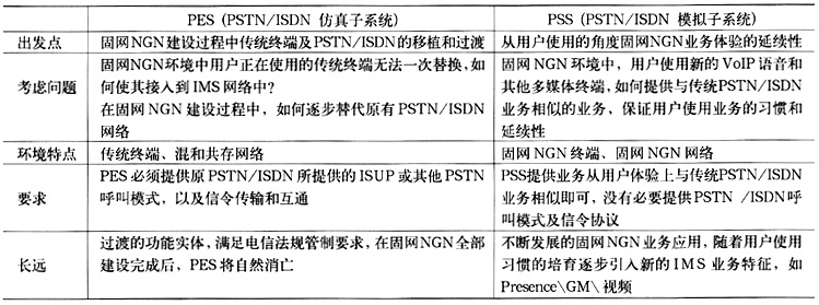 業(yè)務層的PSS和PES子系統(tǒng)針對不同的終端類型和業(yè)務需求而設計。使用PSS和PES主要目的是使寬窄帶域完全分離,即SIP用戶通過PSS子系統(tǒng)完成接入和業(yè)務提供,窄帶用戶通過PES子系統(tǒng)完成接入和業(yè)務提供。具體比較如表2所示。