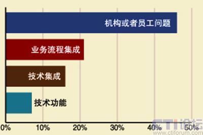 - 服務動機差異,即兩種服務的出發(fā)點不同。一個工商組織是以利潤為導向,利潤的多少取決于顧客的滿意,顧客導向很容易成為其經(jīng)營的目標,商業(yè)服務滿意度研究是商家追求利潤的結(jié)果,是自然而生的;而政府往往缺乏服務的動機,或是借鑒國外或是迫于上級政府的要求,甚至領(lǐng)導可能著眼于政績的提高,然而政府領(lǐng)導看重的這些宏觀內(nèi)容對于普通工作人員并不具備激勵作用,所以政府工作人員缺乏服務的動機,因此,在公共行政服務滿意度研究中,內(nèi)部工作人員行為因素的研究更為重要。下圖是國外實施電子政務過程中對影響提高效率的因素的調(diào)查結(jié)果。