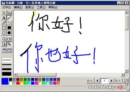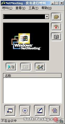 Netmeeting界面下方有四個(gè)按鈕,分別對(duì)應(yīng)了“共享”、“聊天”、“白板”和“傳送文件”四項(xiàng)主要功能(這四項(xiàng)功能需要在會(huì)議屬性中啟用,否則在會(huì)議中處于不可用狀態(tài))。