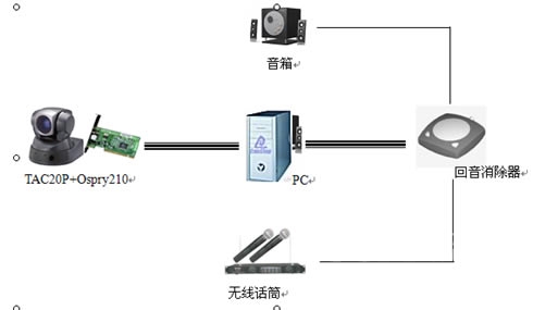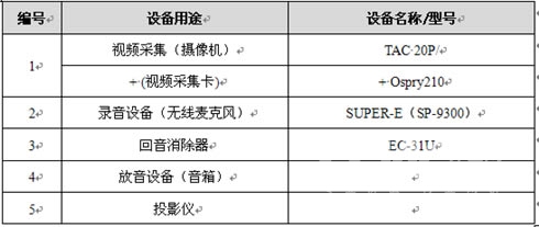 設備要求:攝像機、投影儀、音箱(配"回音消除器")、麥克風。
