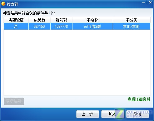 如果你搜索的群已經存在,那么程序將會列出搜索到群號,選中后單擊“加入”即可(如圖11)。