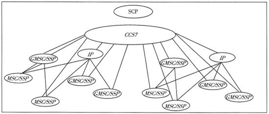 移動(dòng)智能網(wǎng)的組網(wǎng)有多種方案,目前傾向的組網(wǎng)方案是通過OVERLAY方式,在不改變現(xiàn)有移動(dòng)通信網(wǎng)的條件下,通過增加有限的SSP,利用特殊號(hào)碼段觸發(fā)智能業(yè)務(wù)的方式來實(shí)現(xiàn)全網(wǎng)開通智能業(yè)務(wù)的目的。而目標(biāo)網(wǎng)方式則要求把所有MSC端局都升級成為具有SSF功能的MSC,通過用戶登記的業(yè)務(wù)簽單信息來觸發(fā)智能業(yè)務(wù)。其目標(biāo)網(wǎng)的組網(wǎng)圖如圖3所示。