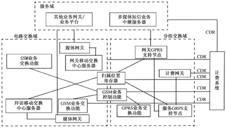 主要實現(xiàn)各類數(shù)據(jù)增值業(yè)務,例如WAP業(yè)務、互聯(lián)網(wǎng)短信業(yè)務、位置應用業(yè)務等。業(yè)務域由各業(yè)務網(wǎng)關(guān)/業(yè)務平臺產(chǎn)生CDR后,發(fā)送給計費系統(tǒng)作后續(xù)處理。例如,多媒體信息服務(MMS)的CDR由MMS