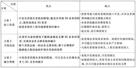 由于國內(nèi)電信運營商一般已建有業(yè)務支撐系統(tǒng),因此在進入到3G時代后就面臨著如何選擇3G融合計費系統(tǒng)建設方式的問題。3G融合計費系統(tǒng)的建設方案主要有獨立新建、升級改造、融合替換三種。三種不同的建設方案對比分析見表2。