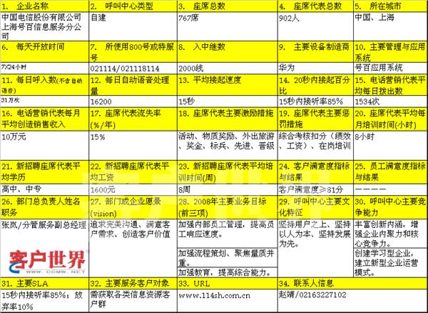 案例研究:上海電信114號碼百事通分公司