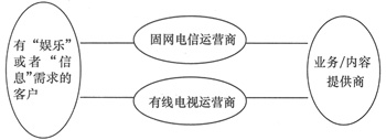 如圖1所示,雖然兩者使用的技術(shù)不同,但它們有一個相同的運營組織結(jié)構(gòu),也就是說,客戶、運營系統(tǒng)和業(yè)務/內(nèi)容提供商是它們競爭的3要素,下面將從這幾個方面對IPTV與“數(shù)字電視”的競爭做簡要的分析。