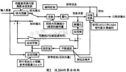H.264視頻壓縮算法采用與H.263和MPEG-4類似的、基于塊的混和編碼方法,它采用幀內(nèi)編碼(Intra)和幀間編碼(Inter)兩種編碼模式。與以往的編碼標(biāo)準(zhǔn)相比,為了提高編碼效率、壓縮比和圖像質(zhì)量,H.264采用了以下全新的編碼技術(shù):