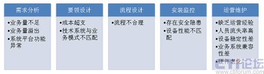 要領(lǐng)設(shè)計(jì)階段風(fēng)險(xiǎn):在該階段,企業(yè)將決定呼叫中心的建設(shè)規(guī)模、技術(shù)設(shè)備、組織架構(gòu)及運(yùn)營模式等一系列環(huán)節(jié)。此過程中,最容易且是最嚴(yán)重的風(fēng)險(xiǎn)在于成本估算的差異和技術(shù)系統(tǒng)與業(yè)務(wù)模式的不匹配。多數(shù)企業(yè)在呼叫中心建設(shè)成本估算時由于經(jīng)驗(yàn)的缺乏無法全面預(yù)測建設(shè)成本,特別是對運(yùn)營費(fèi)用的把握常常相差數(shù)倍。因此,實(shí)際建設(shè)成本過分超出預(yù)算成為困擾項(xiàng)目執(zhí)行者的一大難題。這就使得企業(yè)對呼叫中心的投入猶如一個無底洞,一投再投,嚴(yán)重影響了企業(yè)資金鏈的正常運(yùn)轉(zhuǎn),也為呼叫中心的“成本”角色加重了色彩。此外,很多公司或者系統(tǒng)集成商因?yàn)槌跏纪度氤杀、建設(shè)經(jīng)驗(yàn)或者運(yùn)營經(jīng)驗(yàn)等方面的限制,在呼叫中心建設(shè)初期很重視技術(shù)平臺的建設(shè),但忽視了運(yùn)營思想在系統(tǒng)方案中的體現(xiàn),在系統(tǒng)建成后,再去完善運(yùn)營系統(tǒng),這樣極大地增加了呼叫中心的運(yùn)營和管理成本,也影響到管理效率。