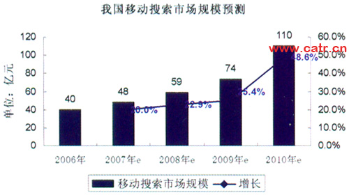 移動(dòng)搜索用戶和移動(dòng)搜索市場規(guī)模將在2007-2009年進(jìn)入高速度增長期。