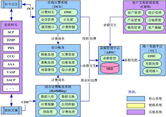 在線計費系統(tǒng)通過實時信令交互實現(xiàn)對高風險和高價值業(yè)務的實時計費;綜合計費帳務系統(tǒng)通過準實時話單采集實現(xiàn)對后付費用戶的準實時計費;綜合帳務系統(tǒng)實現(xiàn)全業(yè)務的綜合優(yōu)惠和帳務處理;獨立的余額管理中心實現(xiàn)對電信余額的統(tǒng)一管理,未來將成為電信的“內(nèi)部銀行”;統(tǒng)一充值平臺實現(xiàn)全網(wǎng)全業(yè)務的統(tǒng)一充值支付。