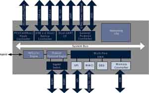 集成式千兆位以太網(wǎng)交換機可很好地配合網(wǎng)絡(luò)處理器,允許不同橋接和路由服務(wù)靈活組合,而不會不恰當(dāng)?shù)卦黾討?yīng)用CPU的負擔(dān)。兩個 USB 2.0 接口為所有通用外設(shè)提供了連接的便利性。隨著媒體格式的數(shù)字化,最終用戶需要管理的文件數(shù)量和容量均大幅增加。集成的千兆位以太網(wǎng)交換機和通過WLAN實現(xiàn)的150Mb/s 以上的數(shù)據(jù)傳輸速率為此提供了最佳支持。如圖3所示,其他快速接口還包括:帶DMA支持的SPI、雙UART(包括 RS-232)和PCI接口。