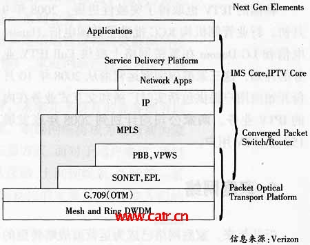 電信級以太網(wǎng)技術在2008年已成為承載網(wǎng)領域的熱點,BT、AT&T、Sprint等部分運營商已開始在下一代網(wǎng)絡中部署運營商級以太網(wǎng)并提供相應服務。未來5年內,在增量市場中,基于電信級以太網(wǎng)的分組化傳送網(wǎng)設備的市場份額將超越傳統(tǒng)SONET/SDH設備市場份額;在存量市場中,二者將長期共存。