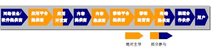 3G時(shí)代的移動(dòng)通信產(chǎn)業(yè)鏈由技術(shù)平臺(tái)提供商、設(shè)備提供商、應(yīng)用平臺(tái)提供商、應(yīng)用開發(fā)商、內(nèi)容提供商、內(nèi)容集成商、移動(dòng)平臺(tái)提供商、移動(dòng)運(yùn)營(yíng)商、終端提供商、渠道合作伙伴等市場(chǎng)主體構(gòu)成。移動(dòng)通信產(chǎn)業(yè)鏈?zhǔn)且粋(gè)整體功能鏈狀網(wǎng)絡(luò),構(gòu)成產(chǎn)業(yè)鏈的市場(chǎng)主體隨著移動(dòng)通信技術(shù)、市場(chǎng)競(jìng)爭(zhēng)情況以及用戶需求的變化而變化。移動(dòng)運(yùn)營(yíng)商在產(chǎn)業(yè)鏈上發(fā)揮的作用也是不同的,每當(dāng)產(chǎn)業(yè)鏈發(fā)生變化時(shí),移動(dòng)運(yùn)營(yíng)商就需要重新進(jìn)行角色定位。