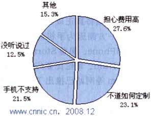 根據(jù)CNNIC的報(bào)告,手機(jī)視頻服務(wù)市場(chǎng)一個(gè)亟需解決的問(wèn)題是對(duì)用戶教育并進(jìn)行市場(chǎng)推廣。另外,費(fèi)用也是限制市場(chǎng)發(fā)展的一個(gè)重要因素,這有待運(yùn)營(yíng)商根據(jù)需求推出相應(yīng)的套餐服務(wù)。