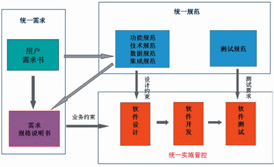 因此,在中國聯(lián)通新一代BSS系統(tǒng)建設(shè)過程中,業(yè)務(wù)支撐部部依據(jù)傳統(tǒng)的軟件工程方法,借鑒國際最佳實踐經(jīng)驗,使用國際最新的需求工程理論和產(chǎn)品線開發(fā)理論,結(jié)合聯(lián)通的實施情況,提出了全新的“中國聯(lián)通IT系統(tǒng)定制軟件產(chǎn)品的管控方法”,即“四統(tǒng)一”的管控模式,并在新一代BSS試點工程中付諸實施,取得了良好的效果。