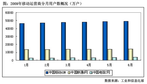圖:2009年移動運營商分月用戶數(shù)概況