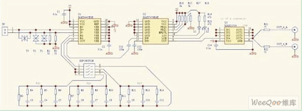 在本方案中,我們采用MAX4445配合外部阻容均衡網(wǎng)絡(luò)固定補償特定的傳輸距離,并結(jié)合MAX7474自動均衡的特點來補償網(wǎng)線質(zhì)量、安裝距離和阻容器件參數(shù)分散性等帶來的差異,很好地解決了1200米視頻信號的自適應(yīng)傳輸。
