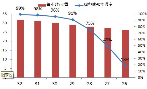呼叫中心指標(biāo)體系中最為基礎(chǔ)最為關(guān)鍵的就是接通率指標(biāo)了,下面,本文重點(diǎn)將呼叫中心部分與接通率相關(guān)的運(yùn)營(yíng)數(shù)據(jù)轉(zhuǎn)化成圖表,用erlang-C(國(guó)際標(biāo)準(zhǔn)的呼叫中心管理軟件)的計(jì)算數(shù)據(jù)表示管理和資源投入對(duì)于呼叫中心生產(chǎn)的巨大影響。