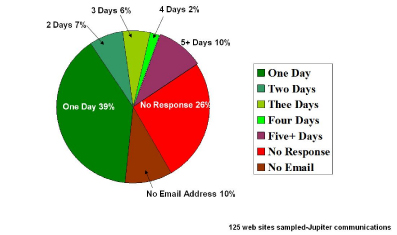 該報(bào)告進(jìn)一步總結(jié)到,60%的網(wǎng)站客戶希望更多互動(dòng)但許多電子商務(wù)企業(yè)無(wú)法回應(yīng)電子郵件且不能提供足夠的電話支持。也有很多電子商務(wù)企業(yè)提供電子郵件支持,比如說(shuō)etoys,但對(duì)于如潮水般洶涌而來(lái)的電子郵件聯(lián)絡(luò)他們顯然沒(méi)有什么準(zhǔn)備以至于處理結(jié)果符合客戶預(yù)期的郵件少之又少。如果處理的好