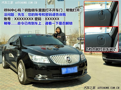 遠(yuǎn)程遙控開啟車門是用來幫助那些粗心大意的車主的,也許把鑰匙誤鎖在車?yán)锏那闆r你一輩子也不會(huì)遇見幾次(我的同事卻經(jīng)常遇到這種窘境),不過一旦真的發(fā)生了,你就會(huì)慶幸自己的車裝配有安吉星系統(tǒng)了。因?yàn)槟阋部梢酝ㄟ^給安吉星服務(wù)中心打電話,就可以遠(yuǎn)程遙控打開車門。
