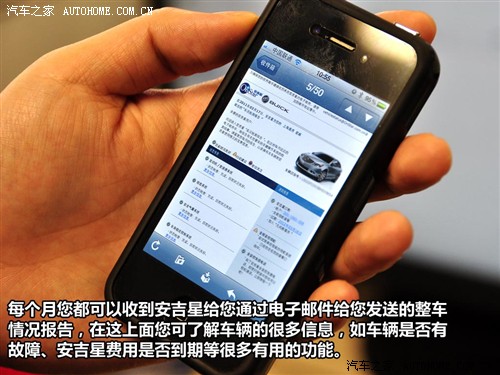 另外,隨著現(xiàn)在手機(jī)或者平板電腦的逐步興起,安吉星公司已經(jīng)開發(fā)一套無線端控制程序,您可以在您的手機(jī)或者平板電腦上安裝一個(gè)程序,之后發(fā)送一個(gè)指令短信就可以完成原來需要在車內(nèi)通過人工方式進(jìn)行的服務(wù)工作。并且未來,安吉星也會(huì)增加一些娛樂功能,如訂票或者訂餐業(yè)務(wù)。不過陪同人員也表示:“公司的核心還是以提供車輛安全保證服務(wù),更多增值服務(wù)只要我們想做隨時(shí)可以推出。而為車輛提供安全保證這項(xiàng)則是我們的競爭對手還沒有做到的,因此我們要先做好自己的根本工作!