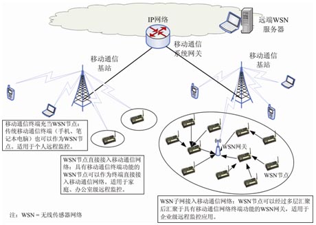 圖:無線傳感器網(wǎng)絡(luò)和移動通信的結(jié)合