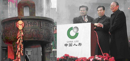 1月8日上午10:30,中國人壽大廈樓前披紅掛彩、獅舞龍騰,中國人壽保險(xiǎn)股份有限公司接受中國人保、中國再保、中國信保禮品饋贈(zèng)儀式在熱烈而隆重的氣氛中順利舉行。三家公司向我公司饋贈(zèng)了包括兩只寶鼎和三只水晶花瓶在內(nèi)的珍貴禮品,中國人保的唐運(yùn)祥總經(jīng)理、中國再保的戴鳳舉總經(jīng)理、中國信保的唐若昕總經(jīng)理先后發(fā)表了熱情洋溢的講話,祝賀我公司雙喜臨門:紐約、香港成功上市和喬遷新大樓,我公司總經(jīng)理王憲章代表公司接收了三家兄弟公司饋贈(zèng)的珍貴禮品并致感謝辭,他祝愿四家公司將中國民族保險(xiǎn)業(yè)更加發(fā)揚(yáng)光大。公司副總經(jīng)理苗復(fù)春主持了此次捐贈(zèng)儀式,出席此次饋贈(zèng)儀式的還有集團(tuán)公司和股份公司總經(jīng)理室的各位領(lǐng)導(dǎo)、各部門總經(jīng)理和員工。