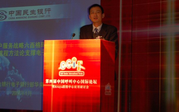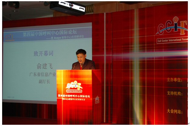 由廣東省信息協(xié)會(huì)、廣東省電子商務(wù)協(xié)會(huì)聯(lián)合主辦,廣東省信息協(xié)會(huì)客戶服務(wù)專業(yè)委員會(huì)、廣州市品派文化傳播有限公司策劃承辦,AVAYA公司總協(xié)辦的第四屆中國呼叫中心國際論壇于2007年1月23日在廣州亞洲國際大酒店隆重舉行,廣東省信息產(chǎn)業(yè)廳副廳長(zhǎng)俞建飛出席會(huì)議并致開幕詞。會(huì)上,廣東省信息協(xié)會(huì)秘書長(zhǎng)黃觀輝、AVAYA公司銷售總經(jīng)理?xiàng)畛、民生銀行電子銀行部華南運(yùn)營中心總經(jīng)理李濤、網(wǎng)易客戶服務(wù)部總監(jiān)張?jiān)频确謩e做了主題發(fā)言。來自全國各地300多位企業(yè)管理人員參加了本次論壇。