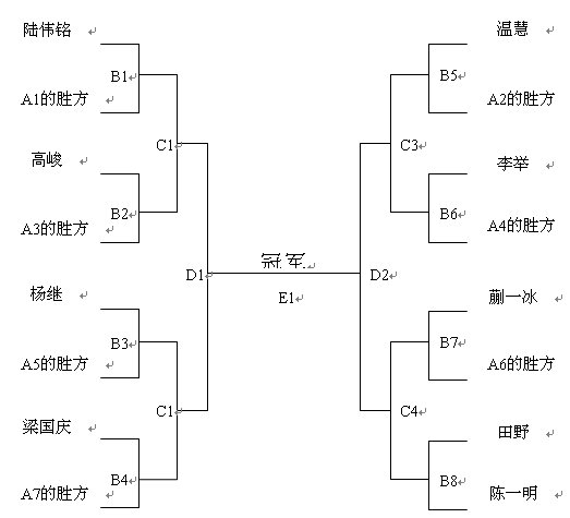 | 比賽雙方 | 蒯一冰(上海怡樂(lè)有限公司)vs A6的勝方 | ||||
