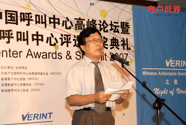 中國最佳呼叫中心評選由中國惟一的國家級呼叫中心行業(yè)協(xié)會CNCCA主辦,代表中國惟一接軌亞太地區(qū)最佳呼叫中心評選,是信息產(chǎn)業(yè)部惟一認(rèn)定的行業(yè)獎項。在今天的頒獎晚宴上,信息產(chǎn)業(yè)部經(jīng)濟(jì)體制改革與經(jīng)濟(jì)運行司王秉科副司長到會致辭,他代表信產(chǎn)部向本年度獲獎的各單位和個人表示祝賀,并希望中國呼叫中心高峰論壇越辦越好,真正辦成中國呼叫中心行業(yè)同仁自己的年度盛會,真正成為與世界各地區(qū)呼叫中心行業(yè)同仁交流溝通的重要平臺。