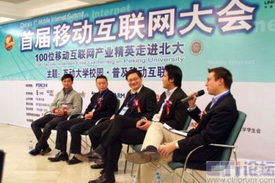 2007年12月19日,首屆移動互聯(lián)網(wǎng)大會在中國的北京大學(xué)隆重舉辦。由手機圈傳媒主辦的本次活動以“互動大學(xué)校園,普及移動互聯(lián)網(wǎng)”為主題,以“100位精英走進北大”為活動主線。包括中國移動研究院、英特爾、GOOGLE、NOKIA、MOTO、聯(lián)想研究院、ARM、方正阿帕比、空中網(wǎng)、3G門戶、手機騰訊網(wǎng)、手機搜狐網(wǎng)、手機新浪網(wǎng)、大頭網(wǎng)、萬蝶網(wǎng)、美科互動、dotMobi公司等100多家移動互聯(lián)網(wǎng)領(lǐng)先企業(yè)均參與到本次論壇。