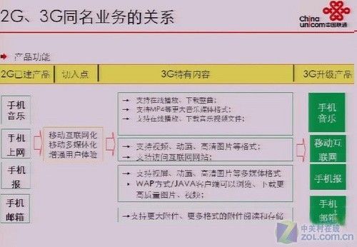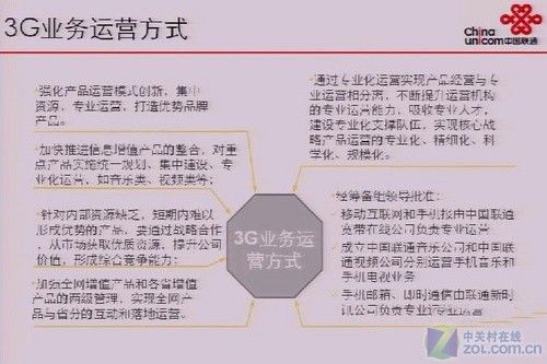 前不久,有論壇網(wǎng)友曝光了幾張聯(lián)通內(nèi)部3G培訓(xùn)所用的PPT截圖,其中不僅提到了聯(lián)通3G業(yè)務(wù)的運(yùn)營(yíng)方式,2G/3G同名業(yè)務(wù)的關(guān)系,還再一次強(qiáng)調(diào)了聯(lián)通將重點(diǎn)推廣的3類九項(xiàng)主要3G業(yè)務(wù)。這和筆者前段時(shí)間為大家曝光的《官方Flash動(dòng)畫:解析聯(lián)通3G九大特色業(yè)務(wù)》所提到的聯(lián)通9大特色3G業(yè)務(wù)保持一致。
