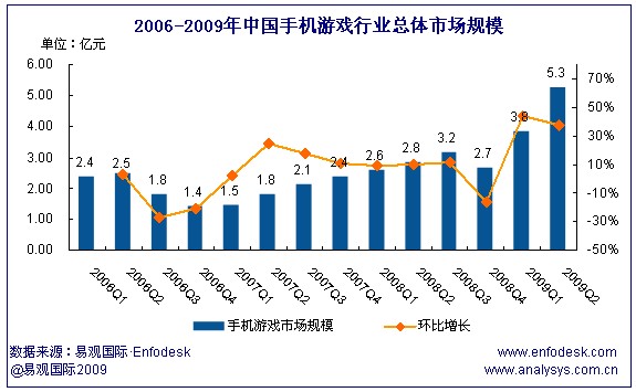 2009年第2季度中國手機(jī)游戲市場規(guī)模達(dá)5.3億