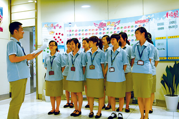 “玉不琢,不成器!彪m說目前社會(huì)的就業(yè)壓力源自于復(fù)雜的社會(huì)原因,可是在客服中心人力資源室的陳依群主管看來,有些還在于80后年輕人的自身原因!斑@些年我做招聘工作以來,看到了一些年輕人抱著希望進(jìn)來以后,因?yàn)槭懿涣藟毫τ滞顺隽恕T诰蜆I(yè)壓力巨大的情況下,多是獨(dú)生子女的80后一代,還沒有完全樹立起正確的就業(yè)觀和務(wù)實(shí)的工作態(tài)度。我們的原則是,凡是進(jìn)入我們公司的員工和見習(xí)學(xué)生,都要經(jīng)歷嚴(yán)格的培訓(xùn),接受規(guī)范的管理,接受我們公司企業(yè)文化的熏陶。通過見習(xí),我們也發(fā)現(xiàn)了很多真正會(huì)發(fā)光的優(yōu)秀人才!