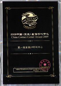第一線安萊榮獲“2009中國(亞太)最佳外包呼叫中心”獎