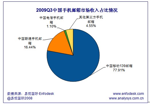 易觀:中移動(dòng)139郵箱領(lǐng)跑2009Q3手機(jī)郵箱市場