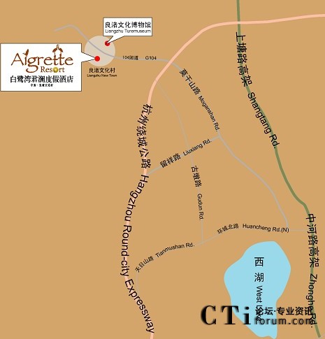杭州城站火車站——西湖大道(入口)——中和路高架(出口)——勾運(yùn)路——莫干山路(過勾莊收費(fèi)站)——新104國(guó)道(大陸出口)——良渚文化村——杭州白鷺灣君瀾度假酒店
