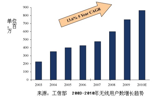 中國的移動增值服務和移動支付解決方案的發(fā)展與手機行業(yè)的增長密切相關。根據(jù)工信部的調查,截止2009年年底,有7.47億人擁有手機,其中2.33億的用戶曾至少使用一次手機瀏覽。工信部2010年4月發(fā)布的一份數(shù)據(jù)顯示,中國的無線用戶數(shù)在2010年底預計將達到8.64億,復合年均增長率達14%,國內電信行業(yè)的總營收在2010年將增長到4250億元。中國手機產業(yè)快速發(fā)展的趨勢主要是中產階層的推動以及3G的發(fā)展。此外,艾瑞預測,手機瀏覽器的的用戶數(shù)可能增長125%達到2012年的5.24億。