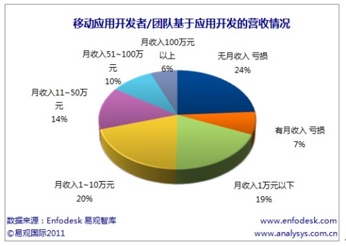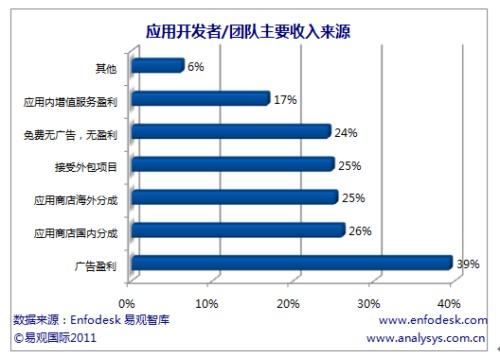 CTI論壇(ctiforum)3月11日消息(記者:張潔)新興移動互聯網終端的快速發(fā)展以及終端廠商“終端+應用商店”的商業(yè)模式帶動了上游應用開發(fā)者的投入力度。據易觀國際(Analysys International)最新報告《中國應用開發(fā)者/團隊研究報告2011》研究發(fā)現,現階段應用開發(fā)者主要開發(fā)免費應用,整體盈利不夠明顯。