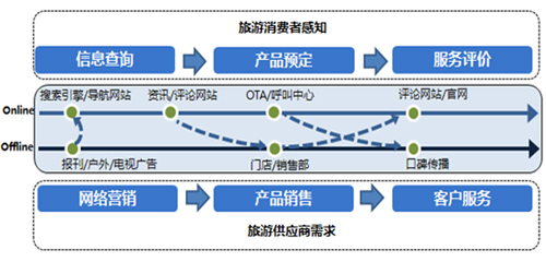從旅游供應(yīng)商的維度出發(fā),缺失的兩個環(huán)節(jié)往往對其訂單生成有決定性意義。一方面是在網(wǎng)民獲取旅游信息的環(huán)節(jié)借助互聯(lián)網(wǎng)展示及搜索廣告進行品牌曝光及活動營銷,提升企業(yè)的品牌知名度及銷售轉(zhuǎn)化率。另一方面是在網(wǎng)民針對旅游服務(wù)進行評價及分享的環(huán)節(jié)及時解答服務(wù)疑問引導(dǎo)評論主題,通過口碑因素提高老用戶APRU值并帶來新用戶。