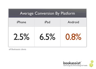 入住前很短時間內(nèi)的預(yù)訂在移動設(shè)備中占據(jù)主導(dǎo)地位,能夠通過手機(jī)進(jìn)行最后一分鐘預(yù)訂是提高轉(zhuǎn)化率的關(guān)鍵所在。