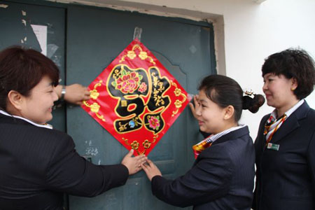 “阿姨,春節(jié)快到了,我們來看看您,前兩天已經(jīng)幫您把電充上了,這次給您帶了個(gè)手電,用著它以后到地下室可以照個(gè)亮!标(duì)長阿依古麗向丁阿姨說明來意,還跟丁阿姨試了試,手電是充電式的,不用換電池,丁阿姨挺高興的。臨走時(shí),阿依古麗還在她家門上貼了個(gè)大紅的“福”字,祝福老人家新年快樂。