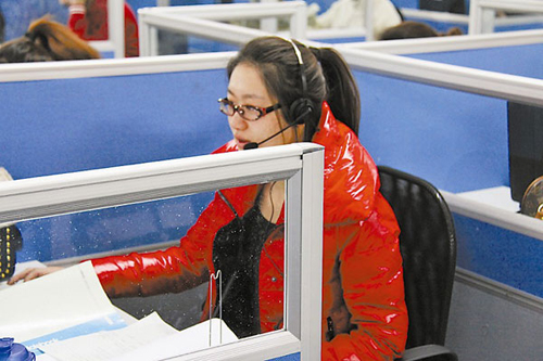 趙曉薇(化名)是拉手網(wǎng)北京客服部的一名工作人員,每天早上8:30,她會準(zhǔn)時(shí)戴上耳麥,開始一天忙碌的工作!疤孛,電話多的時(shí)候,一天得有300個(gè)來電。”曉薇是一個(gè)語氣平和,聲音甜美,笑容溫和的女孩子。正說著,她就趕緊接通了正在鈴鈴作響的電話,開始熱情、耐心地為用戶釋疑解困。