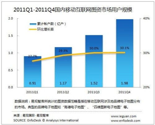 2011Q4國內(nèi)移動互聯(lián)網(wǎng)圖資市場用戶規(guī)模達(dá)1.98億戶